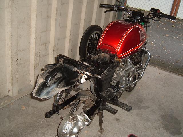 (non pas taper) 400 CX de 1982, comptant 52000 km au compteur pour la somme de 400 euros. Après l'essai de l'engin, qui tourne très bien, je me suis rendu compte que je n'avais aucune chance de me faire piquer en grand excès de vitesse, mais ce n'est pas ce qui est recherché.