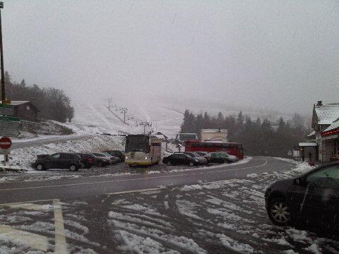A la sortie d'un tunnel, j'ai compris d'où venait la neige...un beau manteau sur l'autoroute, les voitures à l'arret. Et moi comme un con entre les bagnoles (ca roulait mieux sur la neige fraiche que sur celle écrasée), avec la visière moitié ouverte (fermée la neige s'agglutinait, ouverte je prenais tout dans la gueule).