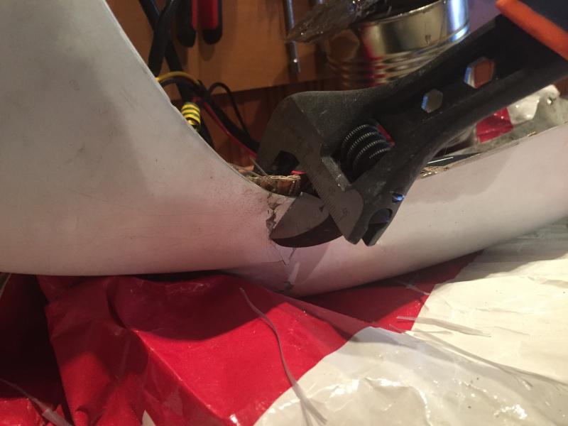 Dernier manouchage. Quand on a pas de serre joint pour tenir une coque en réparation à coup de resine et fibre de verre ^^