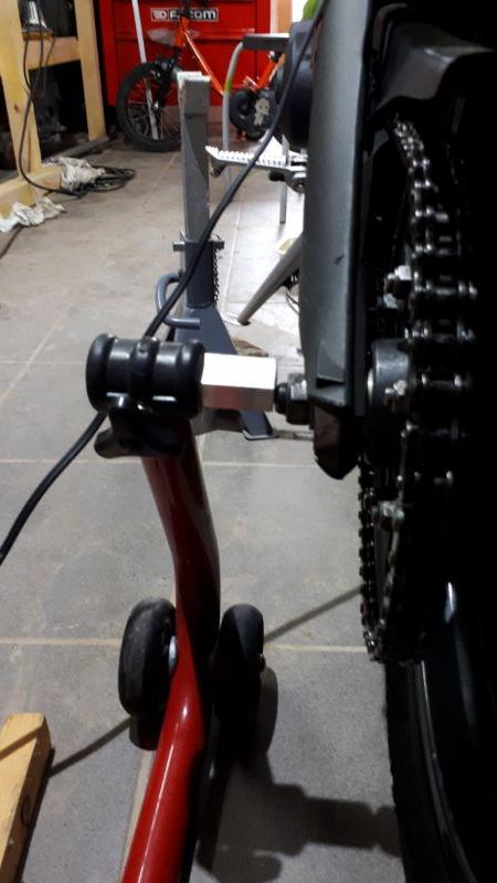 Avec les patins caoutchouc la moto n'est pas suffisamment stable. Je ne veux prendre aucun risque quand je vais déposer la fourche.