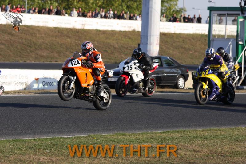 Et au deuxième départ mon pote Sto en R6 violette et jaune #67 fait pareil voir pire car il manque de se vautrer devant moi et moi je refais un wheel... :